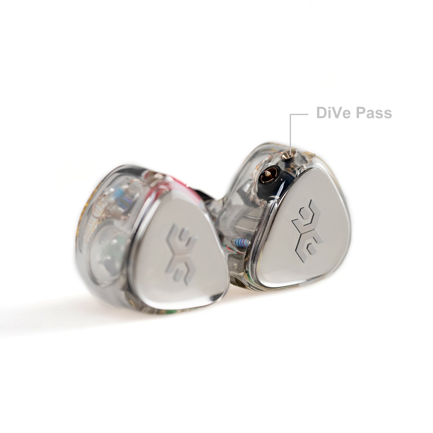 1) DiVe Pass System - The only Hybrid IEM in the market with a perfected independent front and back chamber created to not only reduce air pressure but also improve sound clarity, definition and reduce phase misalignment issues.