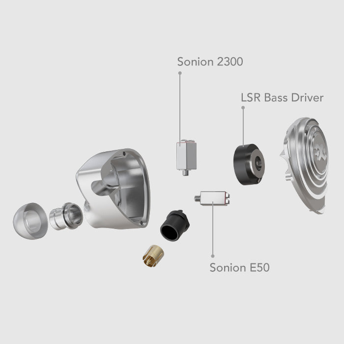 PILGRIM is tuned using 2 distinct types of custom-tailored Sonion Drivers to extract the unique strengths of each driver. The aim is to deliver an incredible and harmonious listening experience, achieving technical excellence. The Sonion 2300 for mids ensures a versatile, smooth midrange response, creating a well-balanced, natural sound across various music genres. Complementing this is the Sonion E50 series, a dual ultra-tweeter balanced armature driver. It extends high frequencies with unprecedented technical capabilities, offering clarity and brilliance. A custom 3-way crossover is used. Each frequency band perfectly blends into the next for a smoothly coherent sound.